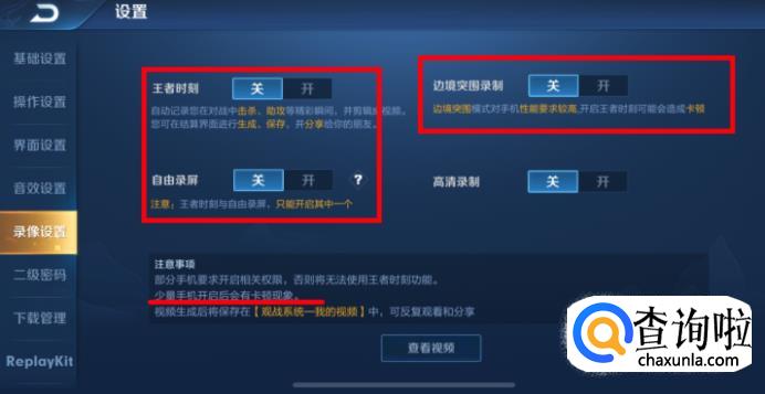 边境图为录制也关掉,王者官方也做了提示在进行边境突围时开启王者时刻可能会卡顿。