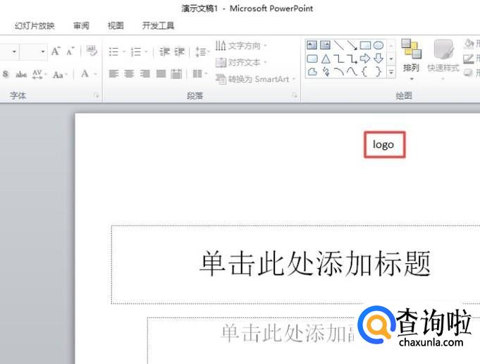 首先,我们打开一个含有logo的ppt文档,我们发现这个logo完全是无法点击的,所以想要删除它显然是不可以直接去点击选中来删除的;