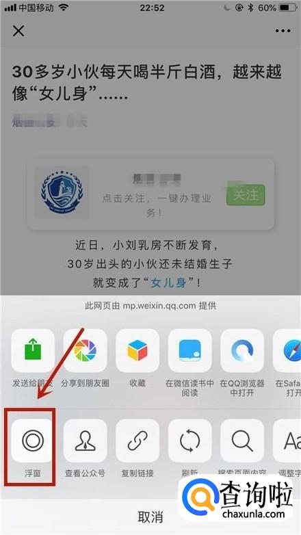 开启微信文章小浮窗