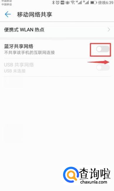 之后我们将蓝牙共享网络的开关向右滑动;