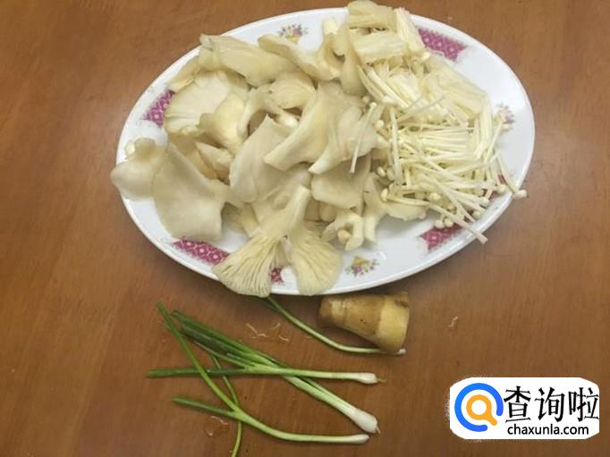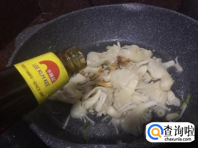 1,凤尾菇 2,金针菇 3,葱 4,姜丝 5,蚝油 6,生抽