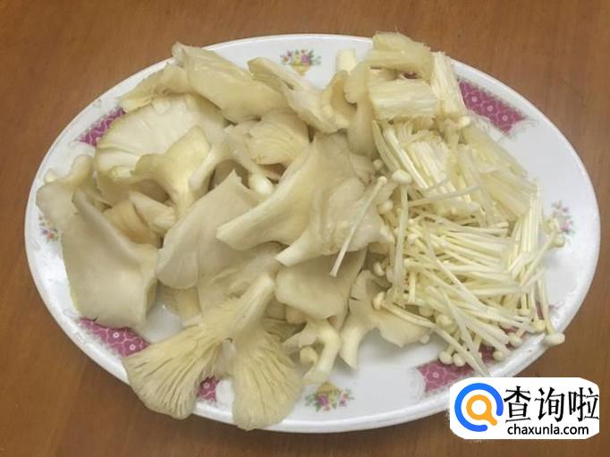 凤尾菇和金针菇洗干净沥干水,切小备用