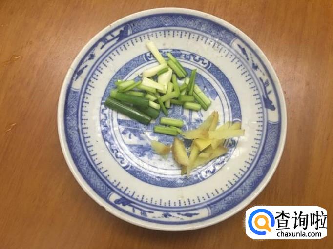 把葱洗干净,切段备用,把姜洗干净,去皮切成丝备用