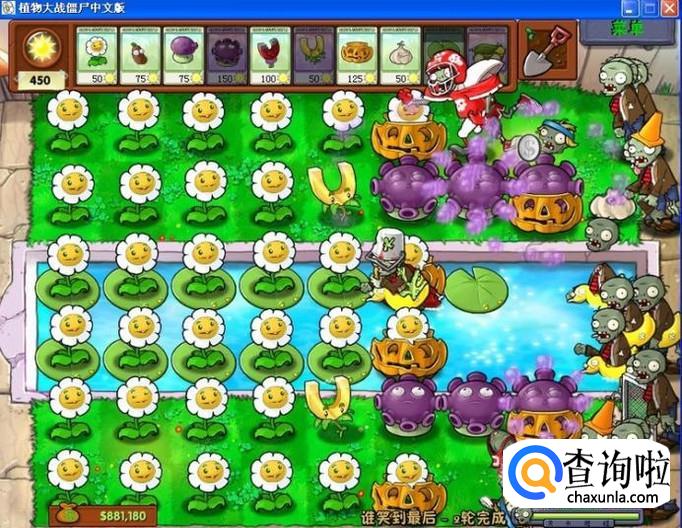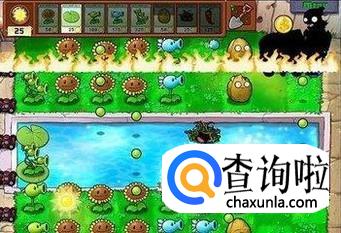 其次,别放高坚果,因为后面会有梯子僵尸,一旦僵尸爬上梯子就没办法了。