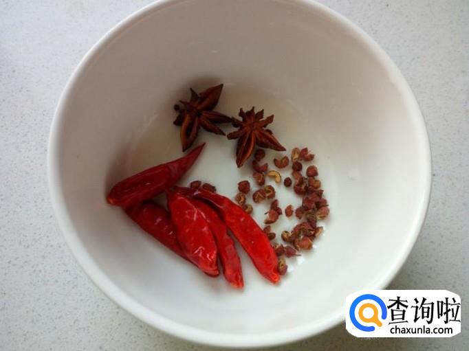 准备好红干椒,花椒,八角,备用。