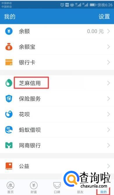 首先,我们登陆我们的支付宝,然后我们点击右下角我的,然后点击芝麻信用;