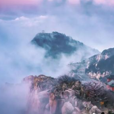 “会当凌绝顶,一览众山小”写的是东岳泰山。泰山被古人视为“直通帝座”的天堂,成为百姓崇拜,帝王告祭的神山,有“泰山安,四海皆安”的说法。自秦始皇开始到清代,先后有13代帝王引次亲登泰山封禅或祭祀,另外有24代帝王遣官祭祀72次。泰山是中华民族的象征,是东方文化的缩影,是“天人合一”思想的寄托之地,是中华民族精神的家园。