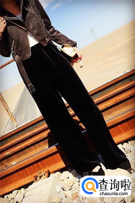 注意:黑色金丝绒阔腿裤适合腿细腿长妹子,腿粗腿短妹子请绕行!