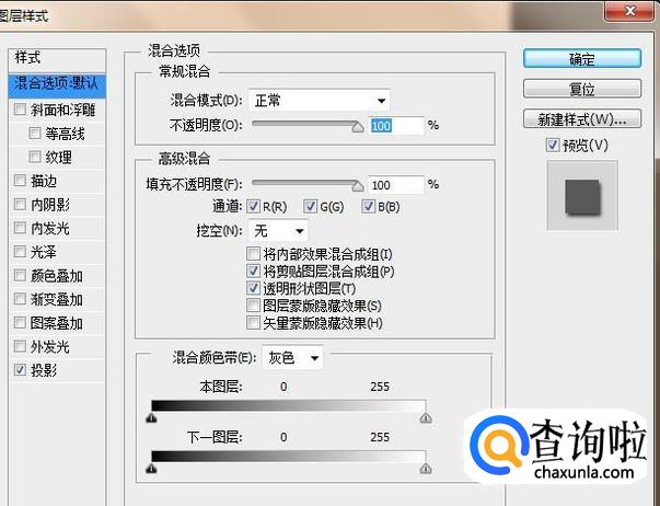 点击图层勾选投影并点击确定,如下图所示。