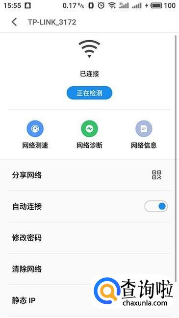 进入手机连接中的WIFI详情界面,点击“分享网络”后即可生成一个二维码,点击进行保存。