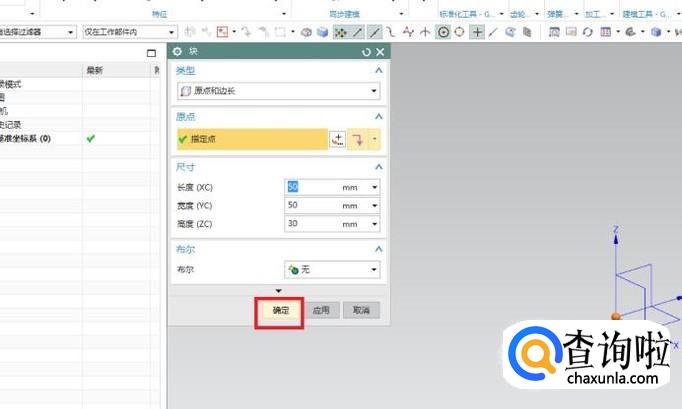 一切的参数设置好之后,就看对话框的下面,如下图所示,点击“确定”,长方体模型就建造好了。