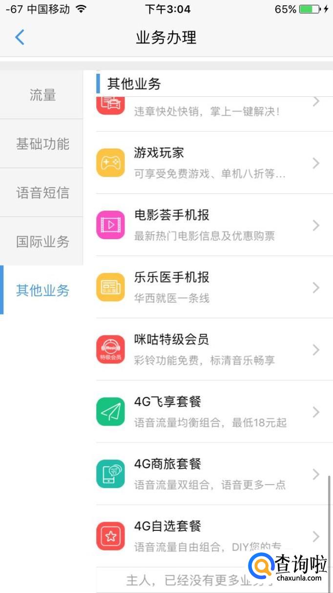 然后选择 其他业务选项就可以看到套餐的更改选项了,我们点击进入之后就可以更改套餐了