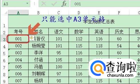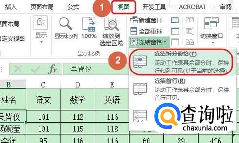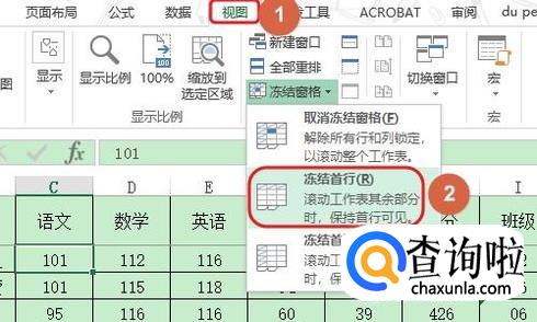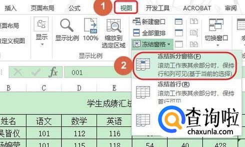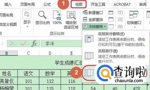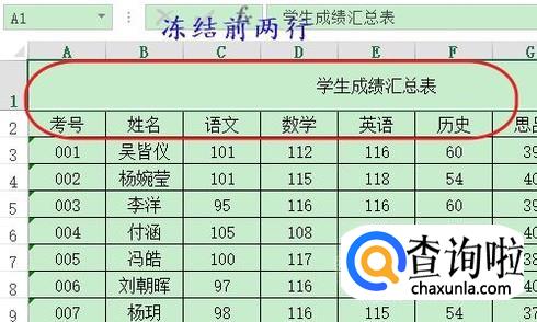 冻结行又分为冻结首行和前两行两种情况,我们先来看看如何冻结首行,比如图一就是一张学生成绩表,想要冻结第一行应该如何操作呢?