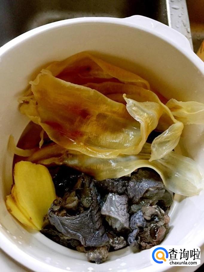 花胶炖鸡汤,花胶提前泡发,鸡肉剁成块洗干净姜切成片,锅中倒入适量清水,水开了倒入鸡肉绰水,把所有材料一起放入炖锅中一个半钟即可