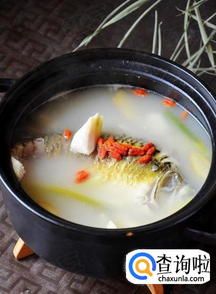 山药枸杞鲫鱼汤,鲫鱼去内脏洗净抹盐,锅中倒入适量油,将鲫鱼放入煎至两面金黄,倒入适量水,山药去皮切成段放入一起煮,等到要关火之前5分钟倒入枸杞一起煮即可。