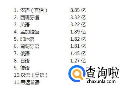 英语是世界上使用最广的语音,那么你知道什么语言是世界上使用人口最多的语言吗?