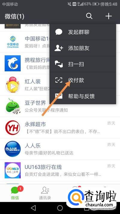 接着点击下方的二维码收款,如下图。