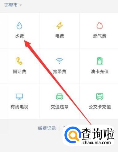 返回到上一页面,点击“水费”,进入下一页面,如图所示。