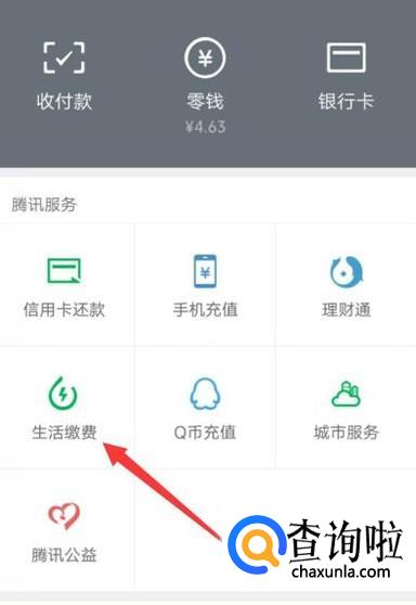 进入之后,点击“生活缴费”,进入下一页面,如图所示。