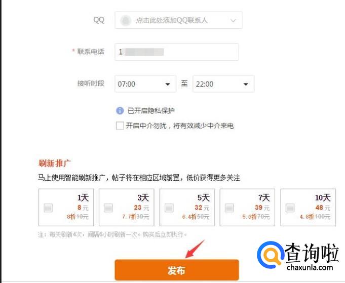 点击房产选择出租后,准确填写好房子的信息和价格,再留下个人的联系方式点击下方的发布即可完成。