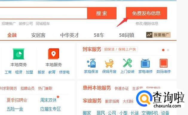 成功登录账号后在首页搜索框的旁边会有一个免费发布信息的功能,点击一下。