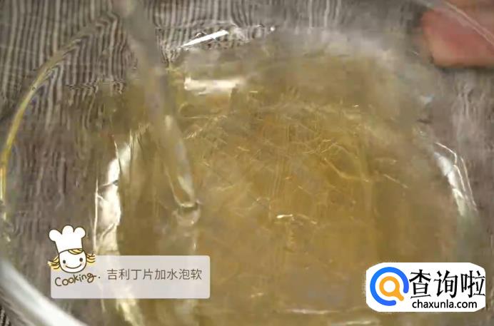 之后把吉利丁片隔水泡软。