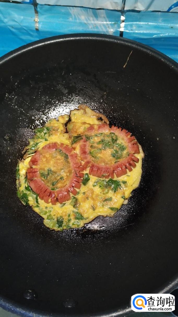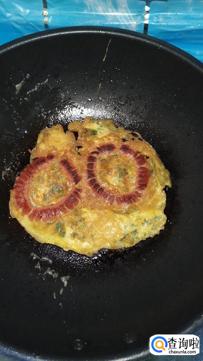 小火慢煎,煎至鸡蛋液凝固,两面金黄就差不多了,注意,火不能大,否则容易糊。