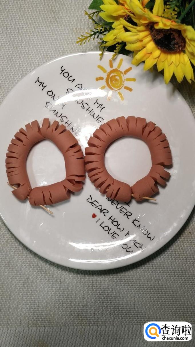 切好之后,弯成一个圆形,用牙签固定一下,放入盘中备用,如图所示。