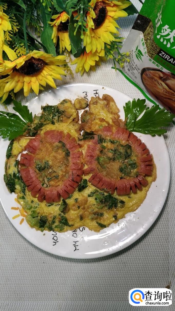 煎好之后,出锅装盘,用芹菜叶装饰一下,撒上孜然烧烤调料,喜欢辣的,还可以放些辣椒粉。