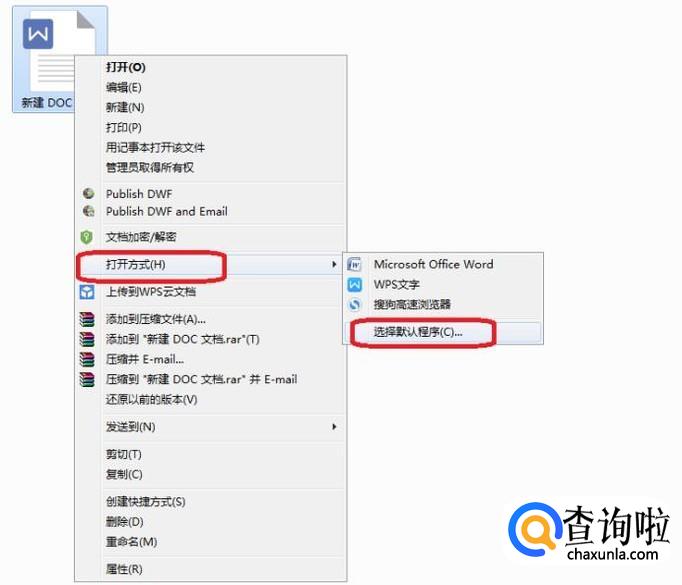右键点击该文档,弹出菜单后,依次点击“打开方式”,“选择默认程序”。