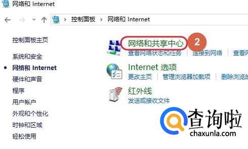 另外也可以通过打开控制面板,然后依次点击“网络和Internet”-“网络和共享中心”,