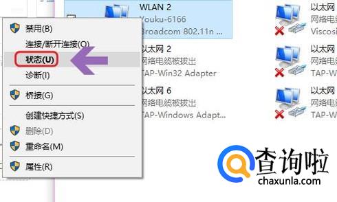 找到自己正在连接的网络,然后点击鼠标右键选择“状态”-“详细信息”,然后物理地址对应的同样是网卡地址,如图三...