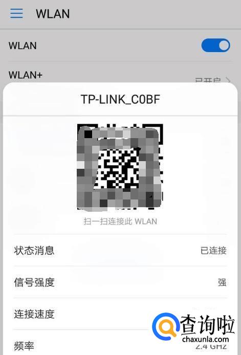 单击手机已经连接好的一个wifi按钮,这时会出现一个二维码,并将此二维码截图保存。