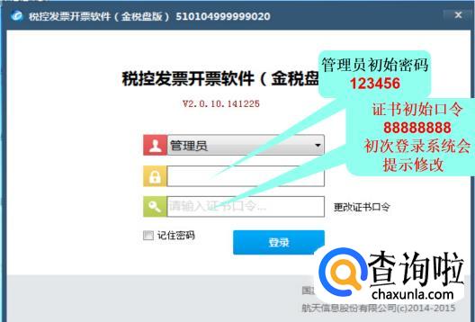 点击“登录”按钮后,系统弹出修改证书口令窗口,用户必须重新设置新的证书口令方可进入开票软件。为方便后期维护,证书口令可统一设置为12345678。