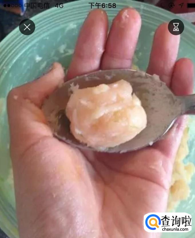 拿出事先准备的杯子,倒入适量的水,用勺子挖起一个鱼丸前先在水里沾一下,这个行为可以一定程度上减少鱼丸的沾黏度,也能使得鱼丸更快的成型。每次用勺子挖起鱼丸时,朝自己的方向向下狠狠的摔打鱼丸,每个鱼丸重复10次,完全成型后就放入已经沸腾的锅里。