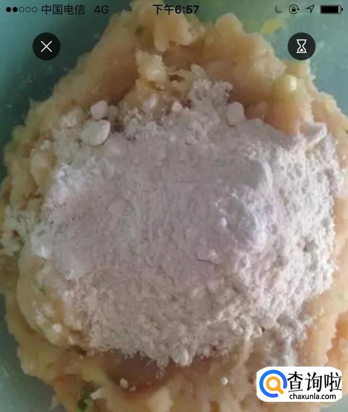 将剁碎的鱼肉放入碗中,加入料酒、蛋白、葱花和盐,顺时针或者逆时针用力搅拌,搅拌均匀后,加入适量淀粉和面粉。(如果淀粉和面粉加多了会导致丸子不Q弹,有面粉感,不鲜嫩。
