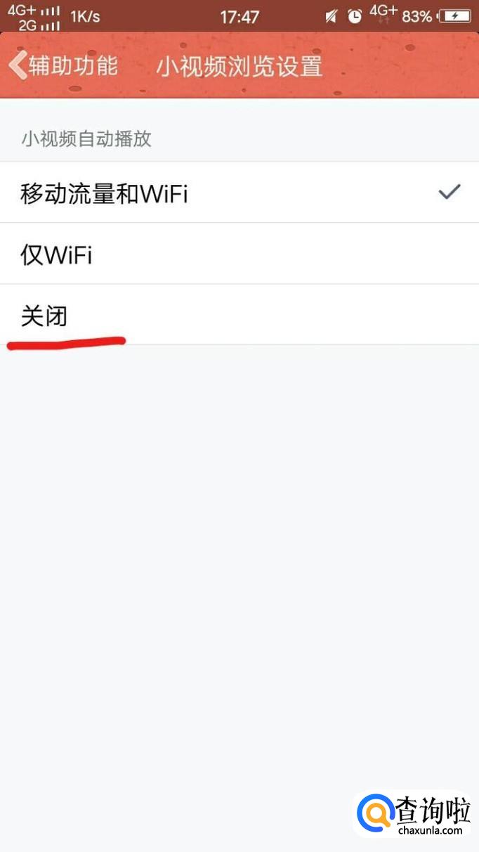 最后,点击“小视频浏览设置”,点击“关闭”即可。