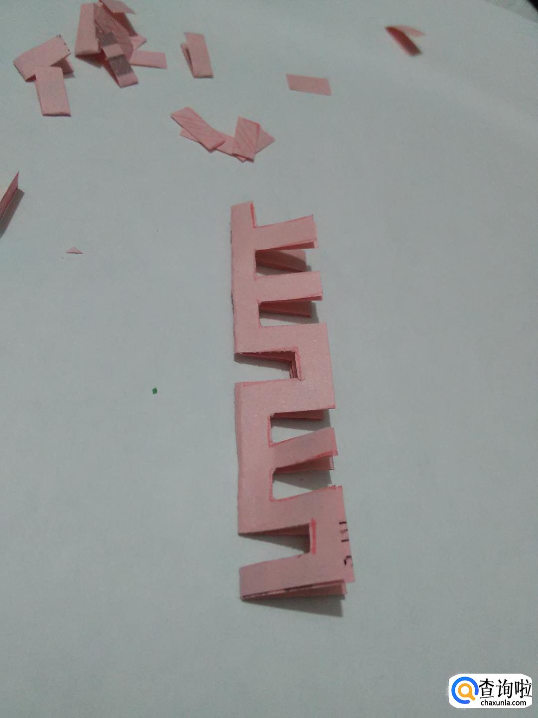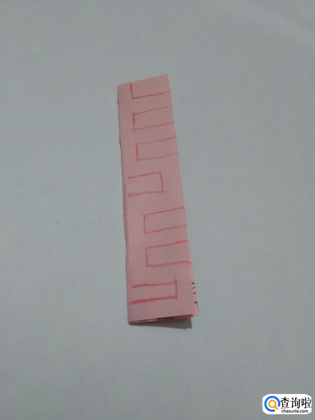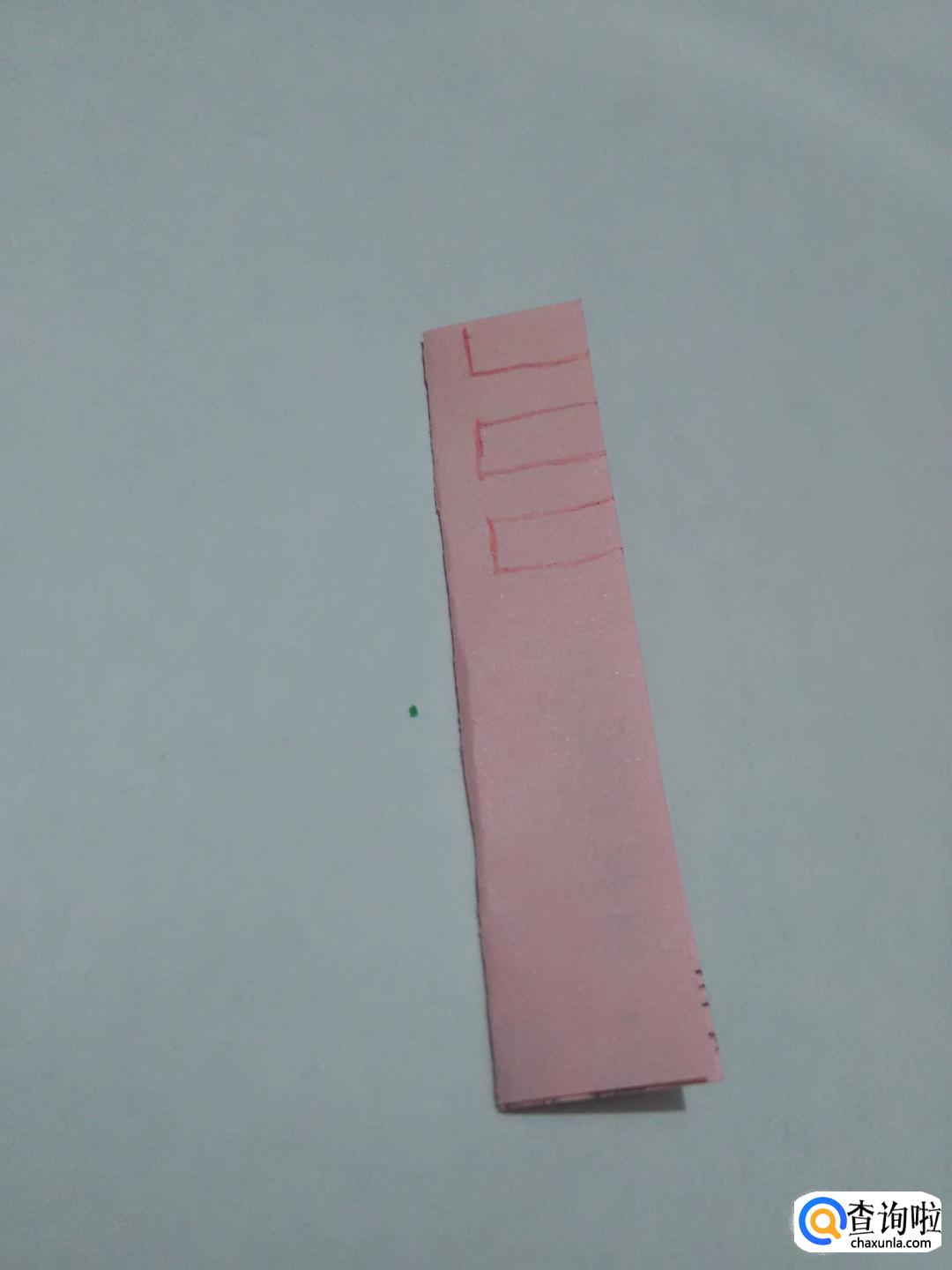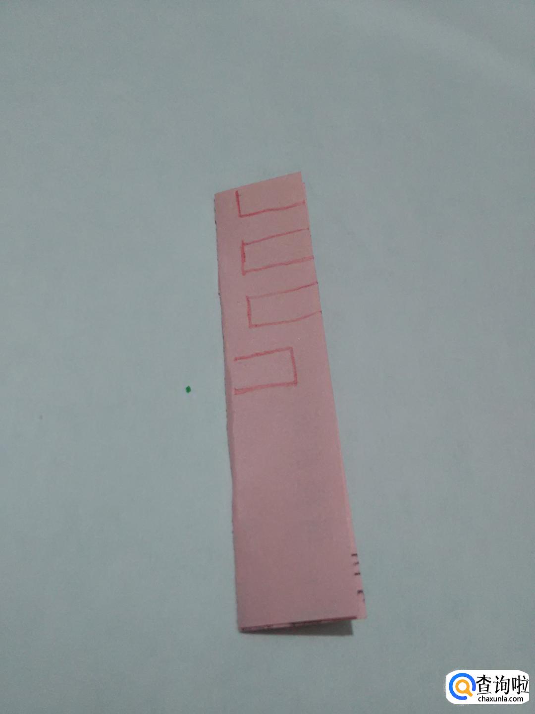 把彩纸左右对折两次后,用笔在彩纸上画出六个长方形,然后把长方形画上阴影,再用剪刀把阴影部分剪掉,打开就是一个双喜字,下面就来剪双喜字。