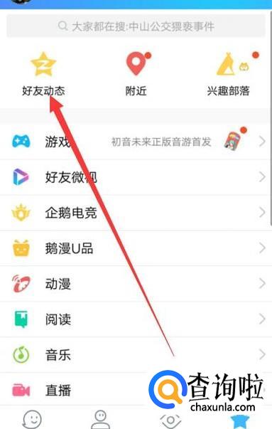 进入之后,找到“好友动态”,点击并进入,如图所示。