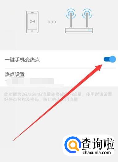 进入之后,将“一键手机变热点”开关打开,如图所示。