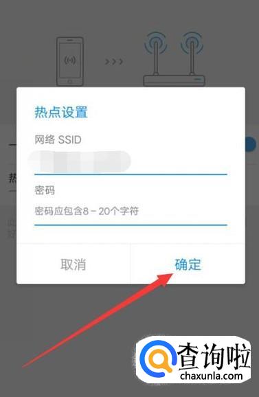 打开之后,设置一下热点名称和密码,点击“确定”即可,如图所示。