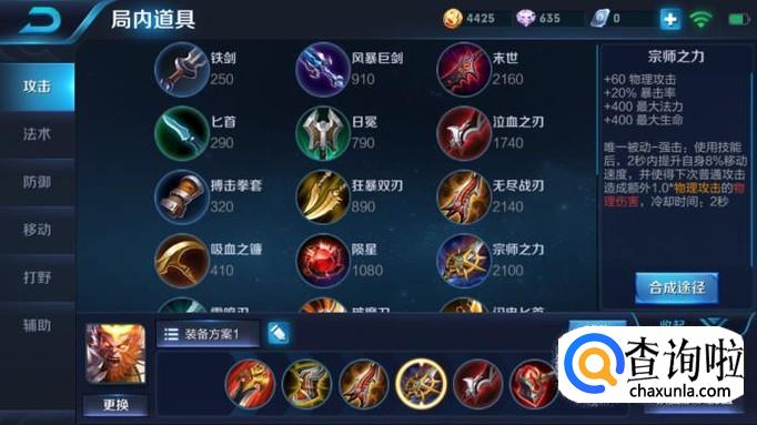 后期装备:贪婪之噬+疾步之靴+无尽战刃+宗师之力+泣血之刃+碎星锤