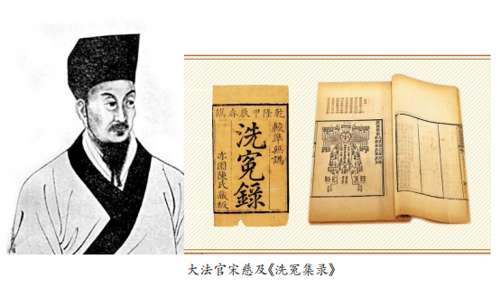 《洗冤集录》是中国古代一部比较系统地总结尸体检查经验的法医学名著,也是世界上最早的一部较完整的法医学专著,通称《洗冤集录》。成书于宋淳祐七年(公元1247年),全书共5卷,卷1载条令和总说,卷2验尸,卷3至卷5备载各种伤、死情况。《洗冤集录》记述了人体解剖、检验尸体、检查现场、鉴定死伤原因、自杀或谋杀的各种现象、各种毒物和急救、解毒的方法等十分广泛的内容。书中对于自杀、他杀或病死的区别十分明确,案例详明。如溺死与非溺死、自缢与假自缢、自刑与杀伤、火死与假火死等都详加区分,并列述各种猝死情状。这部书中所记载的如洗尸、人工呼吸法、夹板固定伤断部位,以及银针验毒、明矾蛋白解砒毒等都是合乎科学道理的。《洗冤集录》是集宋慈以前外表尸体检验经验之大成的著作。作者在书中开篇即提出不能轻信口供,认为“告状切不可信,须是详细检验,务要从实”,对疑难案件尤“须是多方体访,务令参会归一,切不可凭一、二人口说,便以为信”。他还提出检验官必须亲临现场、尸格必须由其亲自填写的尸体检验原则。