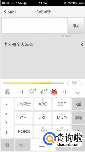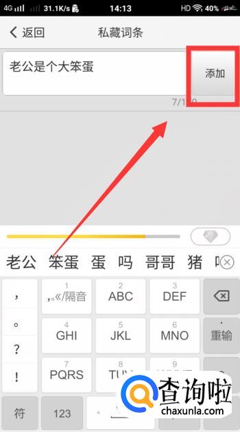 然后就进入【私藏词条】的界面啦,输入内容后,点击【添加】。