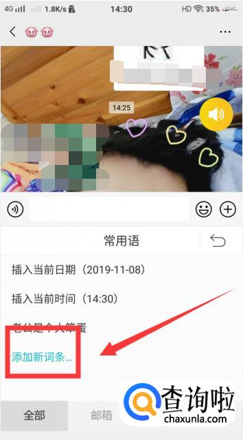 添加好了自己设置的词条之后,就是怎么使用使用这个词条了。点击小章鱼,点击【常用语】,就可以看到刚刚编辑的词条啦。