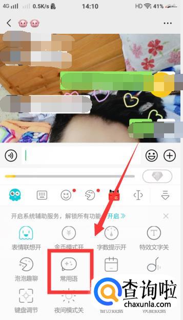 点击之后,在下面就会出现很多辅助功能,点击【常用语】。
