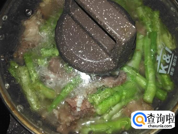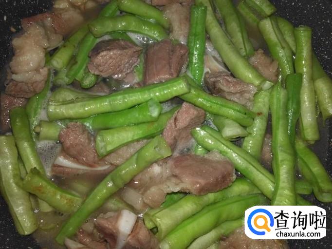打开锅盖,加几粒精翻炒一下,熄火。非常清甜好吃的猪肉炖豆角就做好了。