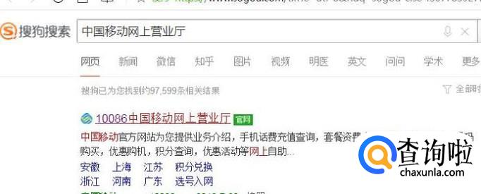 然后输入中国移动网上营业厅并点击回车键,如下图所示。