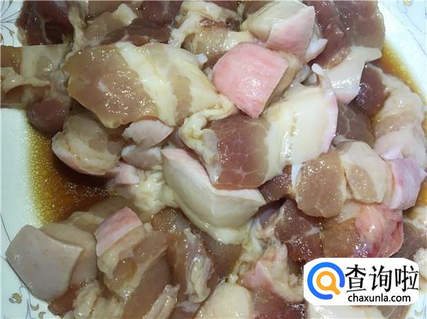 五花肉切成薄片,加入适量的花生油、酱油、蚝油、料酒,腌制半小时。五花肉一定要切薄一些,炒出来才更好吃哦。