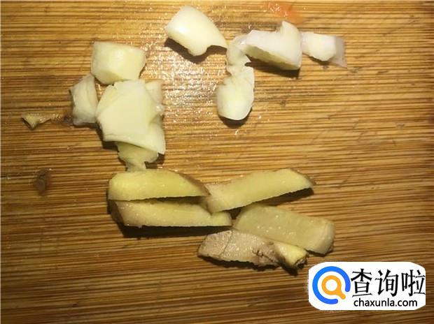 姜清洗干净,切成姜片;蒜头剁碎,备用。